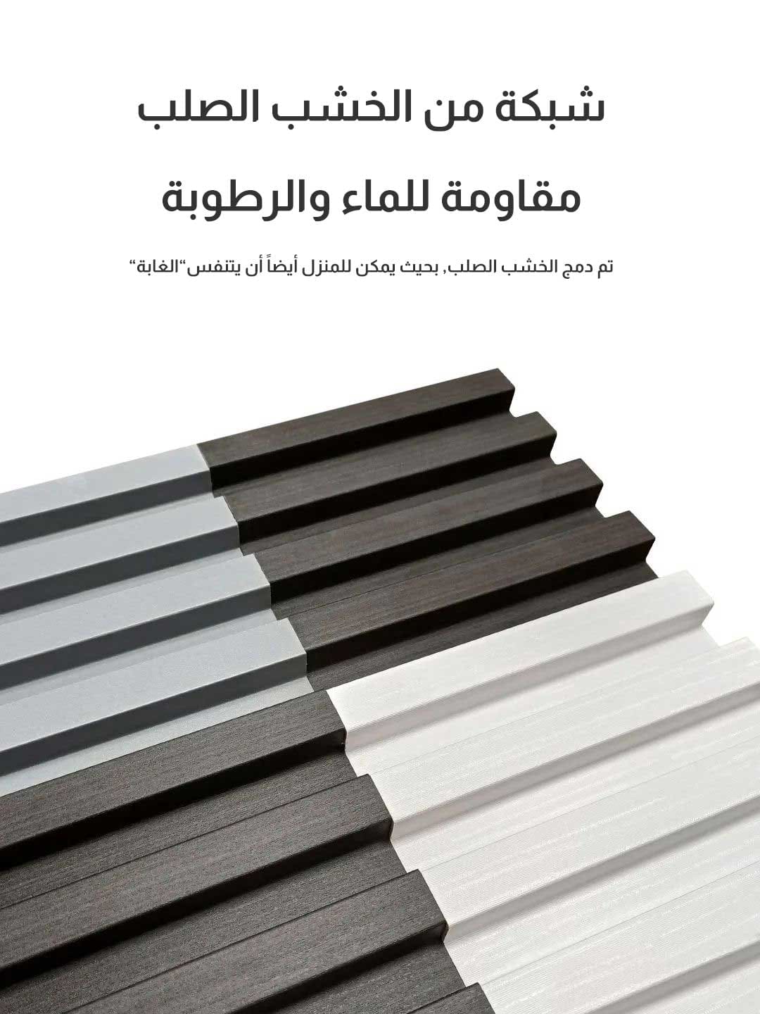 الشبكة الخشبية الصلبة مصنوعة من خشب الصنوبر. (ملاحظة: حجم صريف الخشب الصلب: العرض 150 مم * السُمك 20 مم * الارتفاع 2750 مم) لا يوفر الملمس الفريد المتأصل للقشرة الصلبة المصنوعة من فحم الخيزران الراحة القصوى للرؤية فحسب، بل يخلق أيضًا جوًا فنيًا مختلفًا للمساحة. تجعل الشبكة العمودية المصنوعة من الخشب الصلب المساحة أعلى بكثير.