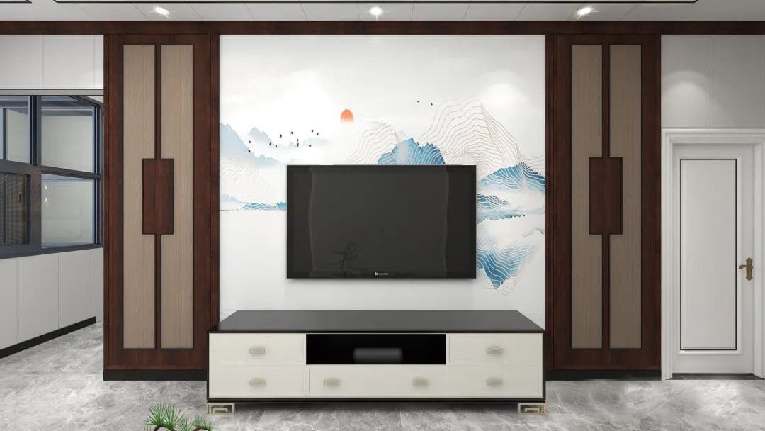 خلفية التلفزيون عادة ما تكون عبارة عن جدار كامل،إذا تم تحويله إلى جدار تخزين، فلا ينبغي التقليل من سعة التخزين.